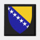 Armoiries de Bosnie-Herzégovine. Les armoiries de la Bosnie-Herzégovine ont été adoptées en 1998, en remplacement de la conception antérieure qui était en vigueur depuis 1992, date de l'indépendance de la Bosnie-Herzégovine, et elles suivent la conception du drapeau national. Le bouclier à trois branches est spécifique et doit symboliser les trois principaux groupes ethniques de Bosnie, ainsi que faire allusion à la forme du pays. Les étoiles ont été adoptées pour remplacer la fleur de lys que l'on trouvait sur des armoiries plus anciennes afin d'éviter de singulariser l'ethnie bosniaque comme la plus importante, et peut-être pour faire allusion à l'Union européenne.