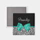 Personnalisez en ajoutant le nom de n'importe quelle fille à cet aimant empreinte de léopard noir et blanc tendance avec un ruban vert émeraude ceint d'un joli arc. Ce design poster de animal élégant est une image à impression plat, et ne contient pas de ruban réel.