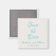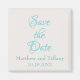 Magnifique aimant mariage bleu et argent, cet arrière - plan a un arrière - plan argent avec un bleu "enregistrer la date" écrit en police bleue fantaisie. Le couple est écrit en bleu avec la date en dessous. Oeuvre créée par : AMBillustrations http://www.etsy.com/shop/AMBillustrations/