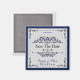 Enregistrer l'aimant Date pour le réfrigérateur affiché. Celui-ci est carré et présenté dans un saphir bleu, gris argenté et noir vintage fleurit thème. Texte préformaté pour vous permettre de personnaliser avec les noms et la date. Customisez ce point et changez le texte à votre place. Image stock freepik.com