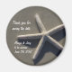 Enregistrez la date magnets mariages avec "merci d'avoir sauvegardé la date" et le texte que vous pouvez customiser en ligne. Parfait enregistrer la date mariage magnets avec beau thème de plage étoiles de mer et sable.