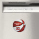 Cet aimant cool à thème de basket présente l'image d'un basketball réaliste avec alternance de panneaux rouges et blancs recolorés - facilement customiser avec le nom de l'école, le nom de la mascotte et le nom du joueur et le numéro du maillot - par katz_d_zynes