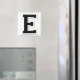 Monogramme Lettre initiale E en noir sur un aimant. Écrivez les mots sur votre réfrigérateur ou votre voiture. La taille de la lettre peut être modifiée et plus de mots ajoutés.