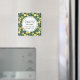 Un aimant de faveur avec un motif mignon avec des citrons jaunes et des citrons verts avec des tiges de feuilles sur un arrière - plan vert foncé.
