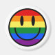 Cette oeuvre colorée présente un visage souriant arc-en-ciel.