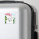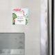 Un aimant de rappel pour une baby shower (ou autre événement) avec un flamant rose mignon et fantaisiste. Entouré de feuilles tropicales vertes et de fleurs d'hibiscus rouges et jaunes. Un cadre dégradé or rectangulaire au centre.