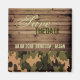 Cartons d'invitation de mariage Camo western en bois de grange rustique et articles coordonnés également disponibles pour votre mariage rustique. Cette gamme de produits comprend également une invitation au dîner de répétition de mariage assortie, une invitation à la douche de mariée, une invitation à la fête de thé de mariée, une carte et un aimant "Save The Date", des cartes de remerciement, des cartes de réponse, et d'autres faveurs de mariage pour vous aider à planifier les événements de mariage élégants les plus inoubliables qui soient !