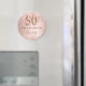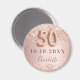 Magnifique Save the Date aimanté pour une fête d'anniversaire de 50 ans, élégant, classique, glamour et féminin. Fond dégradé rose gold et blush. Décoré de confettis rose gold et d'étincelles. Personnalisez et ajoutez un nom. Le nom est écrit avec une police manuscrite de style moderne de couleur rose foncé. Le numéro 50 est écrit avec une police de caractères de style ballon.