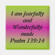 Je suis terriblement et merveilleusement fait. psaume 139.14. Verse de la Bible.