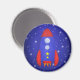 Un vaisseau fusée bleu et rouge s'envole dans l'espace, dans ce design jeune amoureux de l'espace !