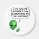 Une tête d'alien de bande dessinée qui dit que c'est toujours le jour de la mère quelque part dans l'univers.