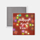 Aimant avec mon design de feux d'artifice multicolore clinquant sur un arrière - plan rouge. Le texte dit "Bonne année !"
