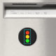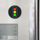 Dessin graphique audacieux du voyant de contrôle de la circulation, en rouge, jaune et vert, avec bordure bleu clair, sur arrière - plan noir.