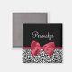 Personnalisez en ajoutant le nom de toute fille à cet aimant empreinte de léopard blanc et noir girly avec un joli ruban rouge vif attaché dans un arc élégant. Ce design poster de animal à la mode est une image imprimée à plat, et ne contient pas de ruban réel.