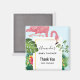 Un baby shower (ou autre événement) vous remercie aimnet avec un flamant rose mignon et capricieux. Entouré de feuilles tropicaux verts, de fleurs d'hibiscus rouges et jaunes. Un cadre de dégradé doré en forme de rectangle au centre.