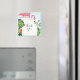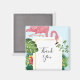 Un aimant de remerciement avec un flamant rose mignon et capricieux. Entouré de feuilles tropicaux verts, de fleurs d'hibiscus rouges et jaunes. Un cadre de dégradé doré en forme de rectangle au centre.