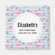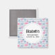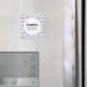Un aimant pour enregistrer la date avec un motif à l'esprit de l'été. Des flamants roses et des ananas sur un fond rayé bleu clair avec des feuilles et des cœurs tout autour.