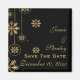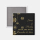 Flammes de neige dorées mariage hivernal noir Enregistrer l'aimant Date qui comprend des flocons de neige dorés suspendus sur arrière - plan noir. Un design moderne et contemporain pour votre mariage d'hiver de décembre ou de Noël. Ce design rétro modèle fait partie d'un ensemble mariage, est entièrement personnalisable et peut être personnalisé.