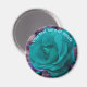 Rose abstraite bleu aqua en pleine floraison avec des gouttes de pluie persistantes, photographie de fleurs et de nature par Susan, aimant de réfrigérateur personnalisé. Vous pouvez personnaliser cet aimant avec le texte de votre choix en cliquant sur Personnaliser. Veuillez visiter ma galerie pour voir plus de cartes et de cadeaux de photographie de fleurs et de nature. Merci de votre visite chez Smilin' Eyes Treasures !