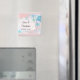 Merci magnet avec de belles fleurs bleues sur un fond rose. Une image d'une page de cahier rectangulaire superposée pour que vous puissiez écrire votre texte à l'intérieur.