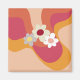 Design rétro coloré Abstrait avec fleurs fleuries et décoration des vagues jaunes, oranges et roses sur arrière - plan rose pastel