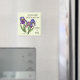 Joli aimant floral décoratif (iris violet sur arrière - plan jaune pâle) avec verset des Écritures de Romains 12:12 "Soyez joyeux dans l'espoir, patient dans l'affliction, fidèle dans la prière."