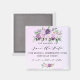 Un aimant moderne et élégant Save the Date pour célébrer votre anniversaire. Violet aquarelle, arrière - plan lavande, texte noir. Décoré de fleurs violettes et violettes. Personnalisez et ajoutez une date et un nom. Le texte : Save the Date est écrit avec un grand script de style à la main tendance.