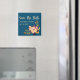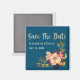 Mariage rustique, moderne, élégant, rose floral et bleu enregistrer l'aimant d'invitation de date.