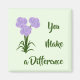 Élevez l'estime de soi avec ce message positif d'amour et d'appréciation sur un aimant de réfrigérateur! Idée cadeau pour les amis et les enfants. Ce design comprend des fleurs violettes et roses et le texte "You Make a Difference".