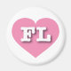 Cet aimant est doté d'un coeur rose vif contenant les lettres coques grasses, blanches et supérieures FL, l'abréviation officielle pour la Floride, l'état du soleil.