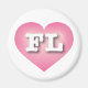 Cet aimant est doté d'un coeur rose vif avec un centre blanchi contenant les lettres coques grasses, blanches et supérieures FL, l'abréviation officielle pour la Floride, l'état de soleil.