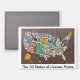 Fabriqué à la main à partir de plaques d'immatriculation américaines d'origine, cet aimant présente "Les 50 Etats de Plaques de Licence", une oeuvre monumentale et un classique de l'Americana qui représente le produit fini de la série de cartes de Plaques de Licences du créateur de médias sociaux Ethan the License Plate Guy sur Instagram, TikTok et YouTube.