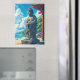 Un moment de beauté sereine avec cette oeuvre d'une statue de Bouddha debout paisiblement au bord de la mer. L'image capture un sentiment de tranquillité car la statue surplombe une plage calme, avec à proximité une porte de temple japonais traditionnel et un ciel magnifique au-dessus. C’est une pièce parfaite pour apporter un sentiment de paix et de calme spirituel dans n’importe quel espace.
