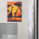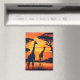 Les silhouettes de deux girafes à un trou d'arrosage, avec des baobabs et le soleil couchant derrière elles font un bel aimant coloré. Parfait pour tous ceux qui aiment la faune, la nature et le plein air.