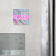 Nom monogramme irisé holographique de l'arc-en-ciel et aimant initial. Votre nom personnalisé et votre monogramme sont écrits dans un élégant script écrit à la main avec un arrière - plan rose. Un cadeau d'anniversaire ou de Noël parfait !