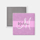 Nom monogramme du motif d'abeille métallique lilas glam et girly et aimant initial. Votre nom personnalisé et votre monogramme sont écrits dans un élégant script en lettres blanches et noires avec un arrière - plan rose. Vous pouvez modifier la couleur du texte, le style et la taille de police à l'aide de l'option personnaliser.