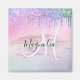 Aimant de luge et de luge avec gouttes de parties scintillant à l'ombre de la licorne arc-en-ciel, un trait de pinceau à la licorne d'or irisé arc-en-ciel, et un arrière - plan rose vif. Votre nom personnalisé et votre monogramme sont écrits dans un élégant script écrit à la main. Vous pouvez modifier la couleur du texte, le style et la taille de police à l'aide de l'option personnaliser.