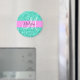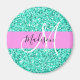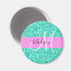 Glam et girly rose et turquoise parties scintillant scintille le nom de monogramme blanc et l'aimant initial. Votre nom personnalisé et votre monogramme sont écrits dans un élégant script écrit à la main avec un arrière - plan rose. Vous pouvez modifier la couleur du texte, le style et la taille de police à l'aide de l'option personnaliser. Un cadeau d'anniversaire ou de Noël parfait !