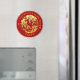 Papier chinois doré coupé d'un tigre (modèle n°9) en cercle ouvert + petit idéogramme chinois de tigre + Bonne année en chinois et anglais et grande 2022. Conception sur aimant rond avec arrière - plan rouge. Vous pouvez facilement modifier la couleur et l'année de l'arrière - plan (police, couleur, taille et position) en cliquant sur le bouton personnaliser. Carte de voeux et carte postale correspondant. Parfait pour un Nouvel An chinois moderne et intemporel du Tigre 2022.