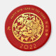 Papier chinois doré coupé d'un tigre + idéogramme de Fu (modèle n°10) en cercle + petit idéogramme chinois de Tigre + Bonne année en chinois et anglais et grande 2022. Conception sur aimant rond avec arrière - plan rouge. Vous pouvez facilement modifier la couleur et l'année de l'arrière - plan (police, couleur, taille et position) en cliquant sur le bouton personnaliser. Carte de voeux et carte postale correspondant. Parfait pour un Nouvel An chinois moderne et intemporel du Tigre 2022.