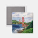 Cette aquarelle capture la majesté du Golden Gate Bridge. Le point de vue est de Presidio en direction du Comté Marin lors d'une belle journée californienne. Rendu en aquarelle.