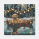 Jetez un coup d'oeil à la magie de la saison des Fêtes avec cette illustration magnifiquement détaillée, montrant un chien fier assis dans un bateau à la décoration festive, glissant à travers un lac serein de Noël. Les lumières scintillantes des pins voisins se reflètent dans l'eau, projetant une lumière chaude et festive qui renforce l'ambiance cosy. Des ornements pendent des côtés du bateau, tandis que des lanternes brillantes éclairent le chemin, créant une scène qui capture l'essence véritable de la chaleur et de la joie de Noël. Cette oeuvre nostalgique apporte une touche de magie de vacances à tout espace, parfait pour ceux qui chérissent l'esprit de la saison.