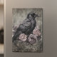 Elevate your space with a touch of mysterious elegance using this moody dark academia fridge magnet. The design features a detailed black raven perched among faded pink roses, rendered in a muted monochrome palette with artistic dripping ink effects. It is a perfect way to celebrate a love for the macabre or a thoughtful gift for an edgy soul.