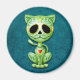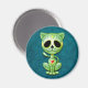 Cette adorable chatte verte est décorée de tourbillons et de motifs à points. Des pédales de fleurs jaunes entourent les yeux noirs purs dans la tradition du Jour des crânes de sucre morts. Le chat est assis, regardant vers l'avant avec sa queue agitant dans l'arrière - plan. La tête surdimensionnée est assise sur un corps minuscule qui crée une apparence ludique et caricaturale. Une étoile à cinq points se trouve au milieu du front du chaton, tandis qu’un coeur rouge et jaune vif apparaît au centre de la poitrine. Une ombre tombe sur l'arrière - plan bleu profond qui fait apparaître le design flotter juste au-dessus de la surface de cet aimant. Ce mignon petit chat est un design amusant et élégant inspiré par les beaux motifs du jour des crânes de sucre morts.