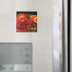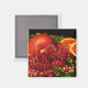Ce magnifique aimant frigo présente des graines de grenade rouge, des tranches d'orange et des feuilles de menthe verte. La photographie d'art original a été numériquement améliorée pour produire un motif abstrait impressionniste.