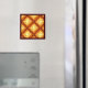 Leslie Sigal Javorek, artiste numérique de ce joli et utile réfrigérateur, adaptation originale d'un classique motif de papier peint Art Déco, ici dans les tons orange citrouille, jaune tournesol, citron et marron et avec quelques contours ombragés pour lui donner l'illusion de la profondeur.