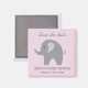 Ephant gris Économisez la date baby shower frigo aimant. Cute zo animal design avec motif arrière - plan pois rose et blanc. Ajoutez votre propre nom d'enfant et de date. Impression à petits pois avec modèle de texte gris. Illustration du thème Jungle / safari pour les filles ou les garçons babyshower party.