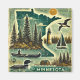 Le Minnesota, Terre des 10.000 Lacs, est magnifiquement représenté dans cette représentation de style grunge et affligée. Les scènes emblématiques de l'état s'animent avec les eaux sereines de la zone de canoë de Boundary Waters, les huards flottant sur les lacs tranquilles et le magnifique phare de Split Rock surplombant les rives accidentées du lac Supérieur. Les forêts de pins et les tons riches de terre ajoutent de la profondeur à la composition, tandis que les textures en détresse évoquent un charme rustique et une beauté intemporelle. Ce design artistique saisit l'essence des paysages naturels du Minnesota, mêlant une nature sauvage et sauvage aux cours d'eau sereins pour une représentation vraiment inspirante.
