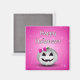 Illustration d'Halloween joyeuse pour les ceintures représentant un citrouille blanc avec un arc rose sur un arrière - plan de livre rose.