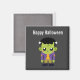 Un aimant avec une image d'Halloween amusante avec un monstre Frankenstein vert.